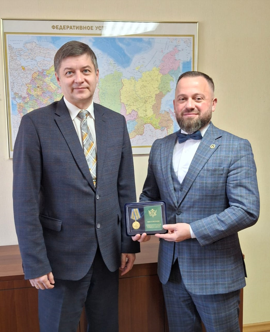 16.01.2026 г. начальник Управления Министерства юстиции Российской Федерации по Сахалинской области Олег Витальевич Данильченко наградил президента Сахалинской адвокатской палаты Белянина Максима Владимировича ведомственной наградой Министерства юстиции Российской Федерации, — золотой медалью «За содействие».